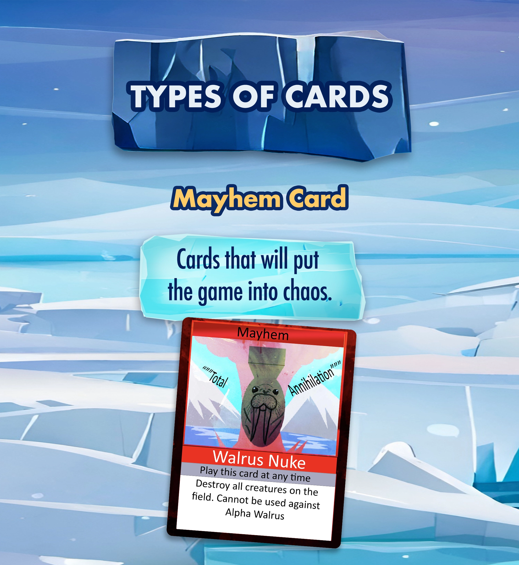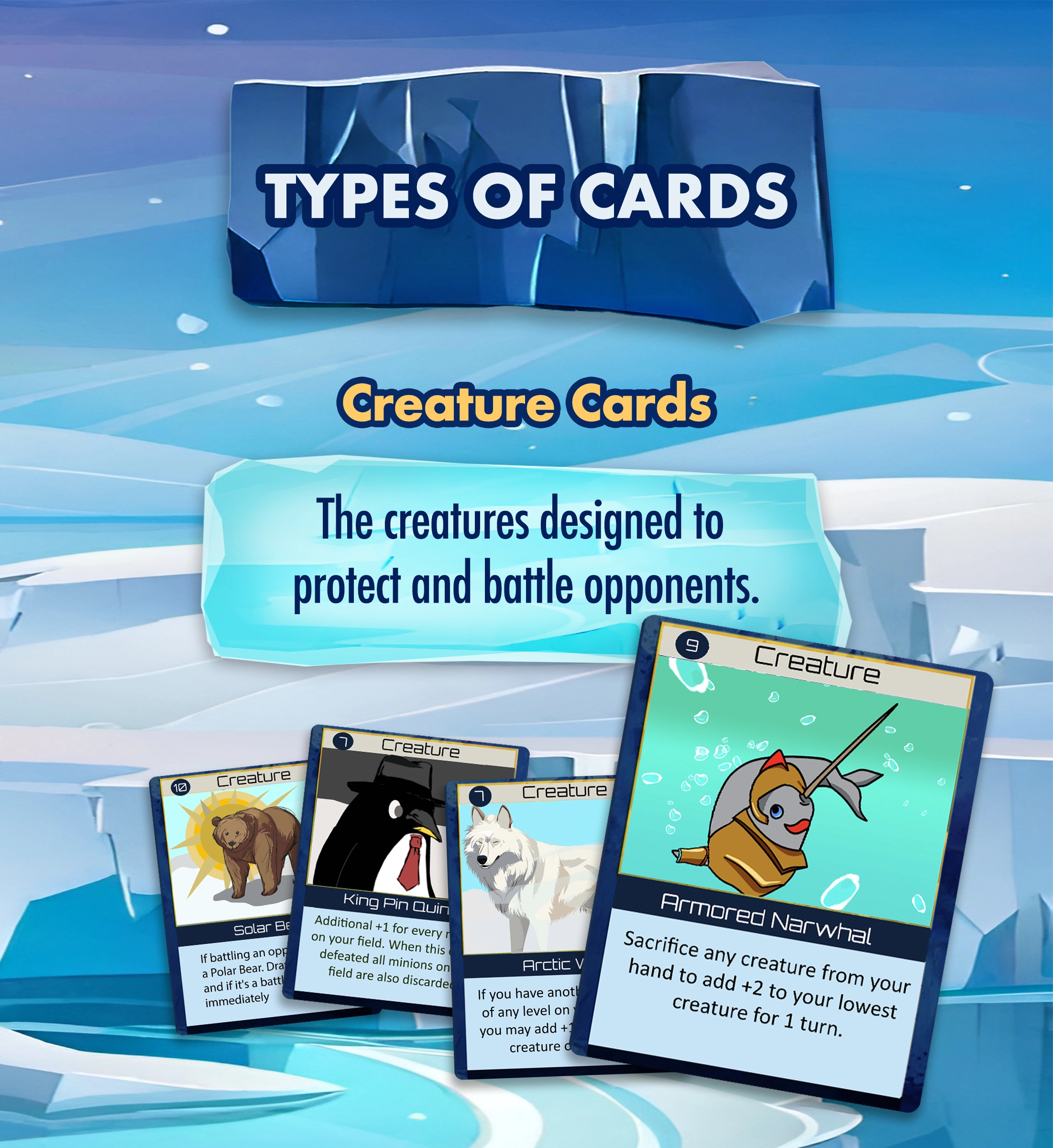 Game Overview: “Faunatopia: Glacier Realm” is a thrilling card game designed for players who love strategy and the magic of the Animal Kingdom. Take on the role of the Alpha Walrus and challenge those who oppose you for the throne of the Glacier Realm, encountering majestic creatures and overcoming challenges to emerge victorious.